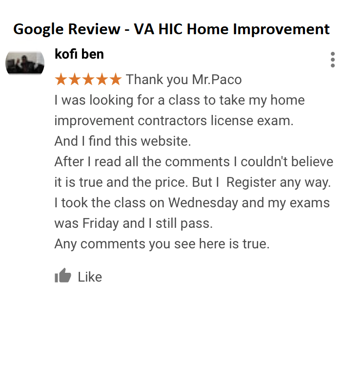 Contractor License Virginia Home Improvement Contractor (HIC) Specialty Exam Prep Course