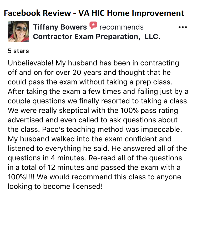 Contractor License Virginia Home Improvement Contractor (HIC) Specialty Exam Prep Course